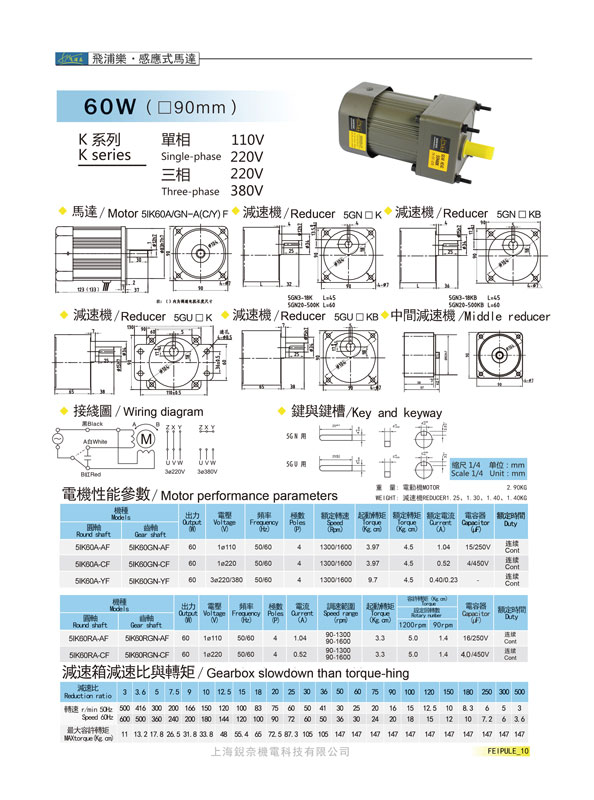 K系列5GN60K感應(yīng)式馬達60W(90mm)