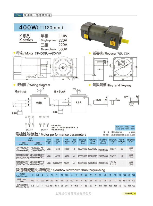 K系列7GU20K感應(yīng)式馬達(dá)400W(120mm)
