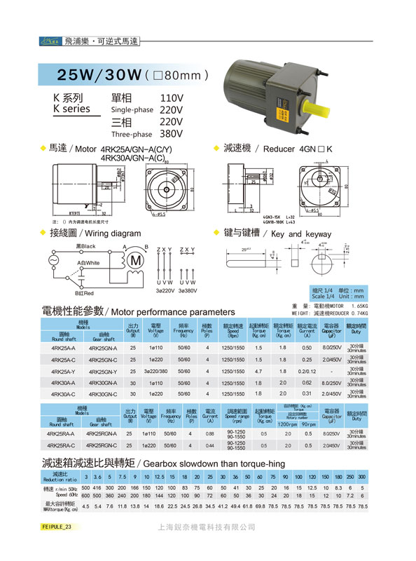 K系列4GN18K可逆式馬達25W/30W(80mm)