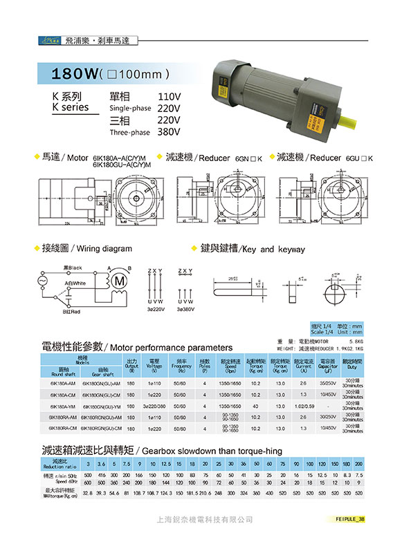 K系列6GN180K剎車馬達180W(100mm)