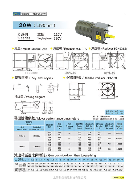 K系列5GN20K力矩式馬達(dá)20W(90mm)