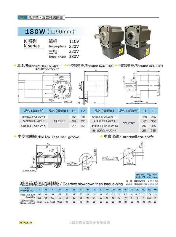 K系列5GU60RC/RT直交軸減速機180W(90mm)